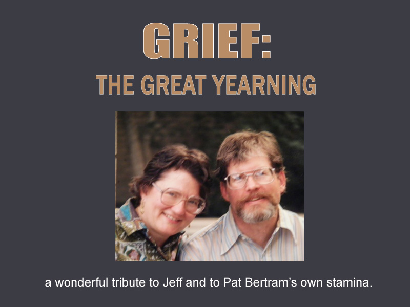 As for my opinion, I think the title on each page does go over the top. Instead something like “Tracing one woman’s struggle to survive the first year following the death of her soul mate.” And “A great comfort to those tossed into the whirlwind of grief and the agony of disbelief.” And “An exquisite book wrenching to read, full of profound truths.” And “A moving tribute to Jeff’s life, Pat’s courage and the deep and abiding love they shared.” Of the pictures if you have to remove one I’d take out the one of the desert with you in the distance. The other pictures are right on topic. The picture of you and Jeff together is beautiful.