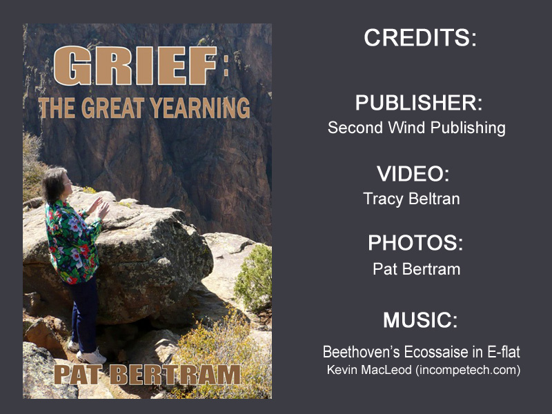 Grief: The Great Yearning is a finalist in the memoir category for the Sharp Writ Book Awards, and I need to put together a 30 second book trailer for their “awards ceremony” video. Thirty seconds isn’t long enough to do a real book trailer, so I’m doing a few photos and text pages — more like a video blurb. I found a thirty second piece of Beethoven’s music — since it’s the last completed piano piece Beethoven ever wrote, it seems fitting — and I have been working on the pages. Do you think these will work? Is it a bit over the top with the title on each page? Do the photos fit with the theme? Any suggestions for improvement?