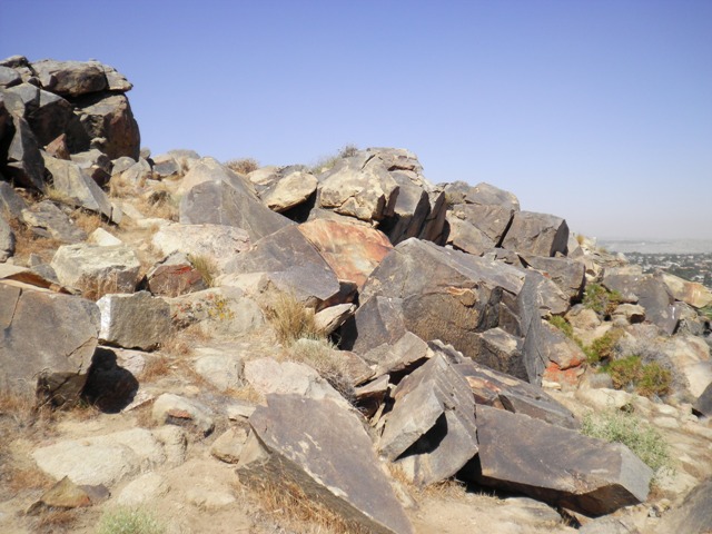 The house is on fenced private property, so a couple of days ago I tried to climb up the unfenced side of the hill. Being more of a hiker than a rockclimber, I didn’t quite make it. (Visions not of sugar plums but broken limbs danced in my head.)