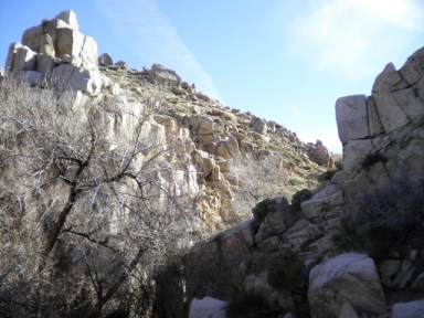 And then today I went on a hike with the Sierra Club to a lovely riparian area in the middle of the desert. (Riparian means relating to the banks of a natural course of water.) At the base of this looming rock formation