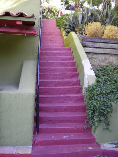 Secret stairs? I’d never even heard of such a thing until a friend invited me on a trip to search out some of the secret stairs in Los Angeles. Apparently, there are many secret stairways in steep hilly neighborhoods. In the days before cars took over the city, these stairs allowed people to get down the hill to schools, markets, and trolley cars. In fact, many of the houses in these neighborhoods had no other access to the outside world than these public staircases.