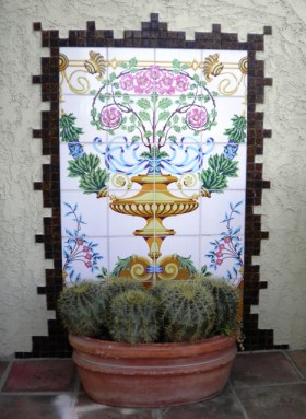 Tile work adorning the side of a house.