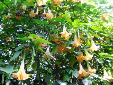 Trumpet flowers blaring their beauty.