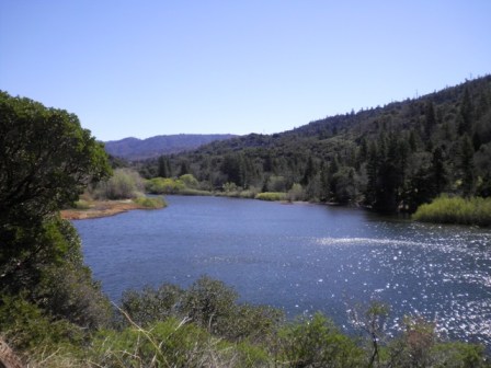 This lake is actually a man-made lake with a drowned settlement at the bottom. Ironically, the once living town of Cedar Springs had plenty of water with abundant rain, spring runoffs, and a year-round stream, so the residents (first ranchers, then homesteaders, and finally townspeople) never expected to have water problems. But when the state needed reservoirs to store water for its ever-growing population, this shallow canyon seemed a natural location. And so the town with plenty of water was killed by even more water.