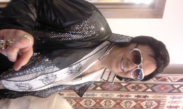 Elvis tribute artistI was invited to a luncheon today where Elvis was scheduled to appear, so of course I went. Elvis sang several songs, made a few self-deprecating jokes, and threw trinkets to the delighted audience. I was sitting right up front, and when he started to sing “I Can’t Help Falling in Love with You” he came and took my hand, looked me in the eyes, and sang to me. Then he kissed my hand and moved on.