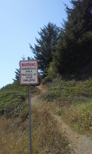 I took a pathway off to the left of the picnic area and discovered a trail leading up to the very point of the sea stack. A sign warned of danger, but after a brief hesitation, I ignored it. I saw nothing dangerous. I’d been on decidedly more treacherous slopes, though I admit I stayed few feet away from the crumbling edge of the very windy point. Adventure is one thing. Foolhardiness another.