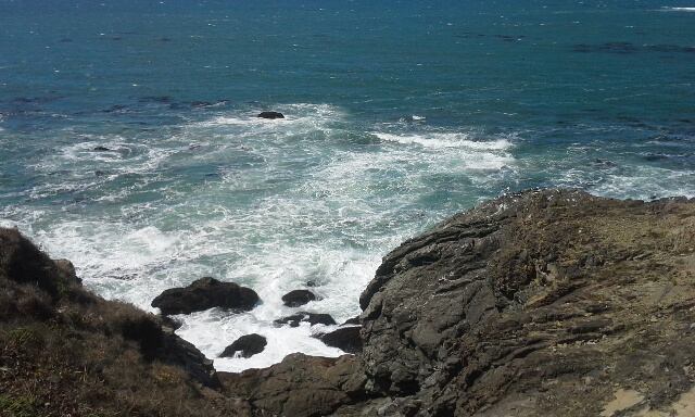 My hostess had business in Oregon, so I drove up the coast with her, and she dropped me off in town. I had no plans, just thought I would see what I could see. After about a half hour of wandering, I saw a sign for Chetco Point. I followed the road, figuring anything that leads me to the point is a good route to follow. Turns out, Chetco Point State Park is a reclamation project, probably sponsored by the bordering waste treatment plant. There was a lovely little picnic area with a view of the ocean and a large sea stack (a remnant of an ancient coast line, too hard to wash away with the softer and sandier part of that old shore).