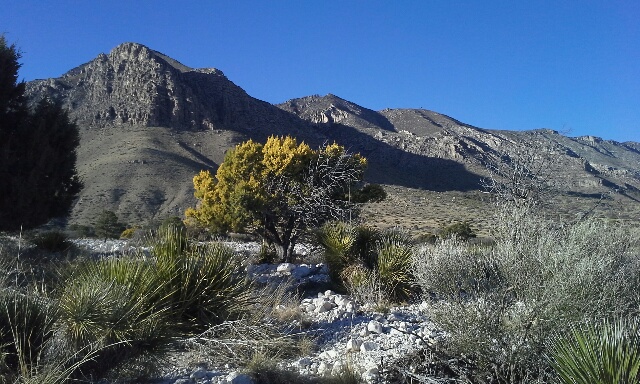 I took the photo of the desert from Carlsbad Caverns National Park. You can’t see my campsite, but it is below the butte to the left of the image.