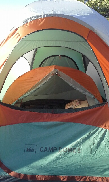 When people would ask me what I will do if it gets cold at night and I’d respond that I’ll put my packpacking tent inside my big tent, they either laughed or stared at me in confusion. Whoever heard of such a thing? But other people subsequently recommended it, and it worked. It was only in the early morning chill that I got too cold for comfort. I also discovered something vital. Those temperature ratings on sleeping bags and camping quilts are the temperature the bags will keep you alive, not comfortable. I still have to work on the comfort factor. Maybe a sheet? I really do not like the feel of nylon. If I put the sheet over top the camping quilt, it might help to hold the warmth in and would feel more comfortable tucked beneath my chin.