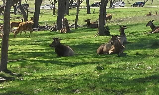 More than thirty species, over 1,000 animals, live on the property. Most will live out their lives in the sanctuary (or so I presume), because they are accustomed to being fed by the workers and by the visitors. (Each vehicle is provided with a small bag of food pellets to feed the animals.) Since it was a hugely visited day (smack dab in the middle of spring break for children), many of the animals were sated to boredom, but others came up to the car looking for a handout.