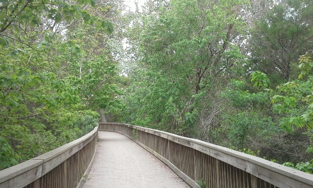 Despite signs warning about the presence of alligators, I didn’t get to see one. The rustling in the bushes that I thought might be an alligator turned out to be a rabbit, but I did see a lot of dragonflies and one lone cardinal.