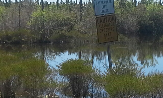 I don’t know why it hadn’t occurred to me to look for alligators in the swamp, maybe because I hadn’t seen any in Florida, but it was a great thrill to see the beast less than ten yards from my car. Very respectfully, I got out of my car to take a photo, then continued to follow the car. Several other times those same boys aided in my spotting an alligator.