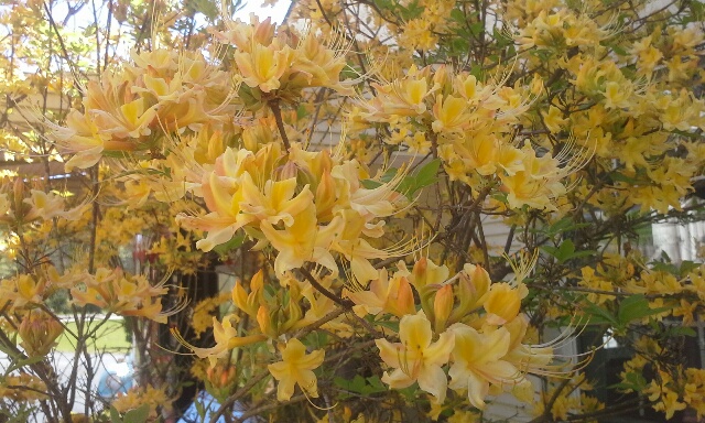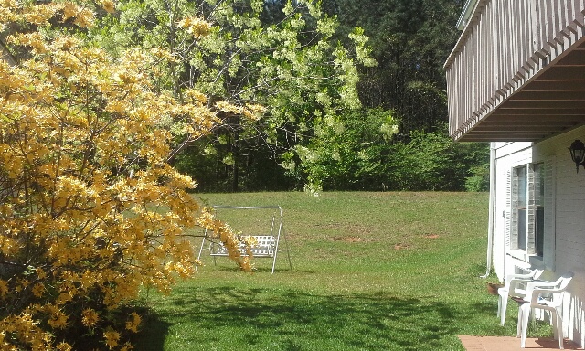 I am now sitting in the sun on a swing outside my room, breathing azalea-scented air, basking under cloudless blue skies, bonelessly relaxed. A sporadic breeze blows away the flower scent and brings me the cool clear odor of pine from the forest behind me.
