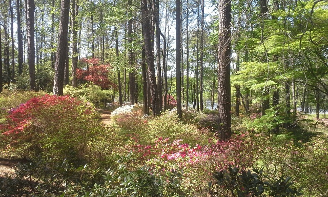 Callaway Gardens calls the Overlook Azalea Trail the most beautiful place on earth, and although I would hesitate to agree — there are many spectacularly beautiful places all over the world and especially in the United States — the trail through the azalea garden is truly lovely. At times it seemed as if I’d wandered into an impressionist’s painting. Other times it seemed as if I’d turned a corner into a heavenly sent and heavenly scented eden.