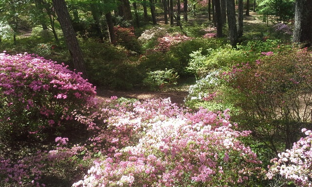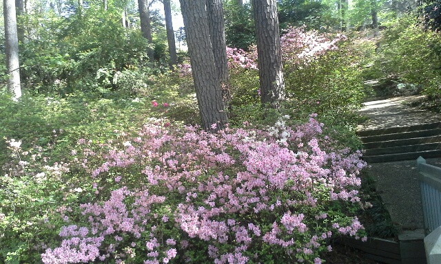 At the beginning, I wasn’t all that impressed. The place was scenic in a “seen it” sort of way. Roads meandering among wooded areas and around lakes. Golf course. Pastoral views. Then I reached the Overlook Azalea Garden, and oh, my!