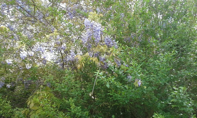 In many areas, I saw trees draped in purple flowers. I should have just enjoyed the vision of loveliness instead of researching the blooms because I discovered that instead of being the mountain laurel I thought it was, it turned out to be Chinese wisteria, an invasive parasite that eventually can strangle its host.