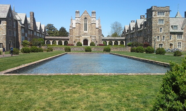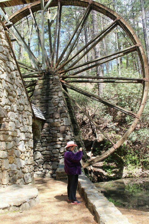 We topped off the tour with a visit to the old mill on the campus, the largest overshot mill wheel in the world, or so the college brags. Water is piped up the stone column and over the wheel, causing it to turn. It still works, and on occasion they run it. Unfortunately that day was not such an occasion.