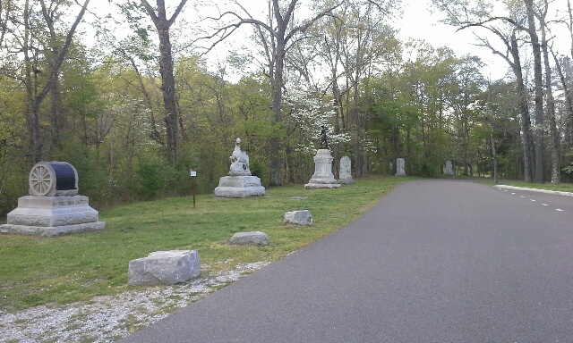 Just about the first thing she asked me when I got there (after we’d hugged hello and eaten the best BBQ I’d ever tasted) was if I’d like to see the battlefield. I shook my head no, having little interest in historical sites, but later when I needed to find a cell signal so I could post my blog and let people know I’d arrived safely, she happened to drive past the national military park commemorating the battle of Chickamauga. I could only gape in amazement at the vast number of monuments and memorials dotting the 9,000 acres where once more than 120,000 men had fought and 34,000 died. (Before that, the Cherokee had been rounded up there and forced onto the trail of tears.)