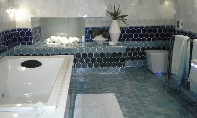 I must have had shrines on my mind because many of the bathrooms and other exhibits at the Kohler Design Center resembled shrines more than places to deal with body functions.