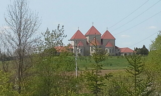 About twenty miles into the country drive, I noticed what looked like a pristine walking path meandering among the fields and snaking up a hill. Then, for just a second, I caught a glimpse of a fantastic castle perched on the hilltop. I craned my neck to get a better look, but trees obscured my view. I took the next right (much to the dismay of Google, which kept directing me to make a u-turn and go left) and got a side view of the place. It was huge. Rectangular. Like a vast hotel or resort. But there were no vehicles in sight. No people. Nothing but that immense building sitting in the middle of . . . somewhere.