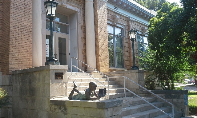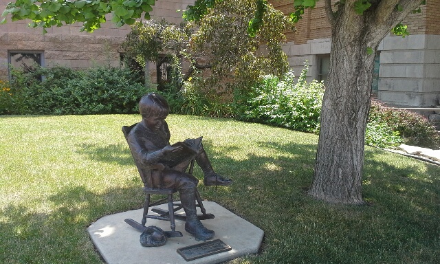 Other sculptures I only caught glimpses of as we passed — children jumping into a swimming hole, a mother and child walking in the garden, a prairie woman gathering flowers, a little boy catching minnows by a pond, a man soaking his feet in a fountain.