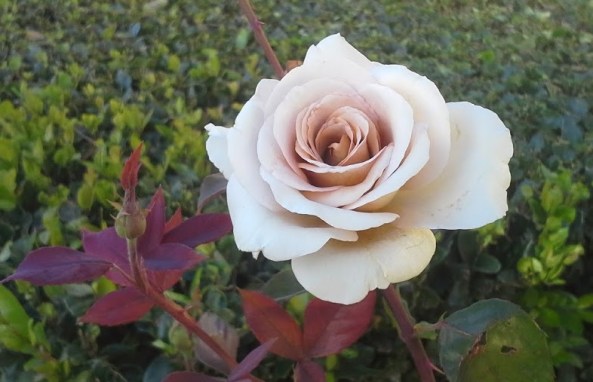 This is one of the few houses here in the desert that has a lawn. And the faded rose even smells like a rose!