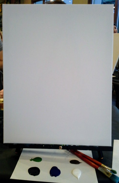 We started with acrylic paint, brushes, and a blank canvas