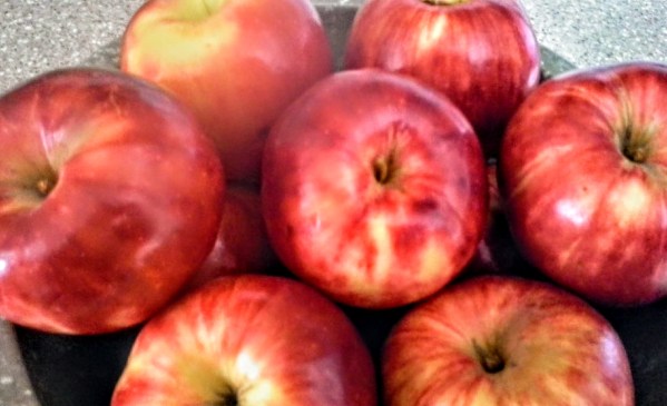 The order finally came in! I had to ask where the apples were because I didn’t recognize them. The Jonathans I was used to, those grown in Colorado, were small. The apples I was steered toward didn’t look any different from any other apple, and since the apples didn’t have a sticker as so many do, I wasn’t sure what I was getting.