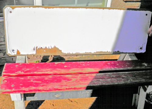 For some reason that I never understood, my brother called our father “Ace.” (Maybe to keep from calling him “Dad” or “Father. I suppose I could ask, but it seems too personal.) Anyway, when my brother saw the bench, he tried to buy it from the hardware store, but they wouldn’t sell to him. He kept at it, going around to several stores, and managed to get a bench. It sat in front of my dad’s house all those years, and by the time I finally saw it, the sun had bleached off the “Ace” and the bench itself was pretty much of a mess. But since it was still functional, there it stayed.