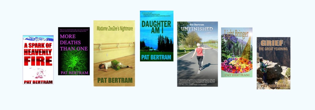 And that is what I became — a published writer. Soon, maybe even by the end of this year or the beginning of next year, my ninth book will be published. This particular work of fiction will be a real departure for me, not suspense (except to the extent that all novels are suspenseful), not a book about grief. Maybe it could be considered an allegory, maybe fantasy, maybe a lot of things. But always a Pat Bertram story.
