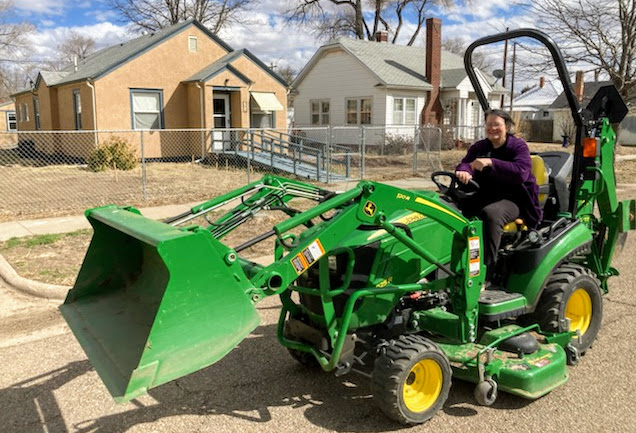 And the novel experience was getting to drive a baby John Deere. The worker who is laying rock around my house drove here in the tractor to make it easier to transport the rock from one side of the yard to another, and to my delight, he let me drive the thing up and down the street, and even showed me how scoop up the rocks.