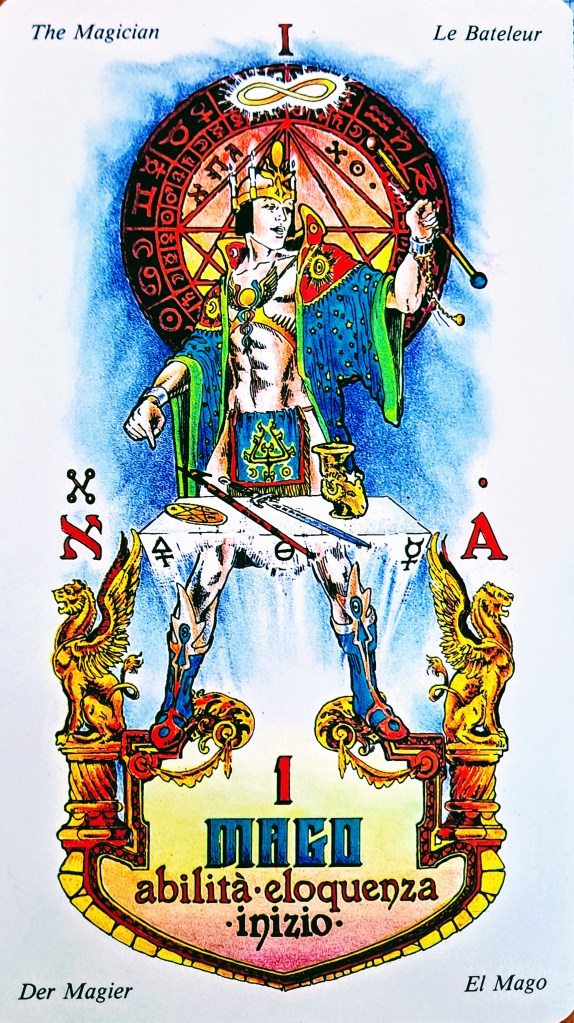 Today’s card was the magician, which is about knowledge, willpower, ability, eloquence, beginnings. It’s about harnessing the magician’s power to create the world you want. It’s about a lot of other things too, depending on whose interpretation you go by, but this brief interpretation seems to fit this particular card.