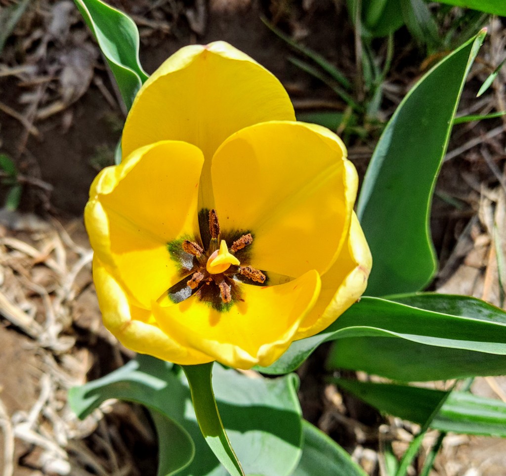 It’ll likely be a few weeks before any sort of flowers appear here. The foliage has emerged though, and it seems some tulips I though were goners have survived. Squirrels dug them up last fall, and although I put them back in the dirt I had no idea which way was up or how deep they should go. At least some of them seem to have been right side up 🙂