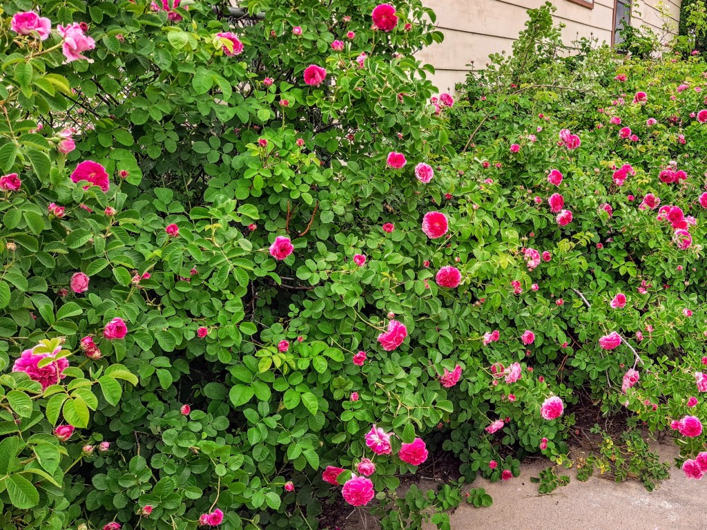 I did get a chance to check out a neighbor’s roses as he suggested. He’s rightly proud of them, and I’m glad I got a chance to see them at their peak