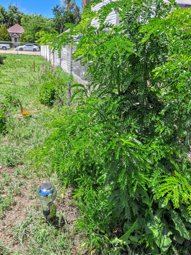 After I planted the bulbs (being careful to follow the directions, which I don’t always do, but I wanted to make sure the bulbs at had at least a slim chance of coming up), I pulled weeds. Then I trimmed a tree/bush. It’s a locust that was cut down a couple of years ago, but it continues to grow. I’ve been undecided about keeping it since I’m not sure I want the responsibility of trimming it as I grow older, so I thought I’d have the tree guy grind out the stump when he comes to grind up all the other on the property, but I kind of like it. It looks like a fern with its tall, wavy branches.
