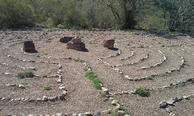 I must admit, I do feel silly being out there watering in these last brisk weeks of fall, but I would feel even worse if my grass were to die of neglect before it even rooted itself. And anyway, it gives me a chance to meander around my paths. They don’t form a labyrinth, but as with walking a labyrinth, walking my paths seems to center me. A labyrinth is a journey into wholeness, a symbol of life’s path, and a reminder that we are on the path we are supposed to be on, and with my paths, I am literally on the path I’m supposed to be on. I don’t need the symbolism of a labyrinth. (The photo is of a labyrinth I walked when I was on my cross-country trip.)