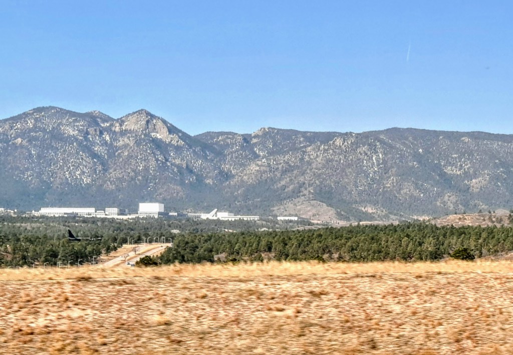 The trip back home took us again through those same three cities, with a stop at the Peterson Air Force Base. Oh, excuse me. Google informs me that it is now the Peterson Space Force Base.