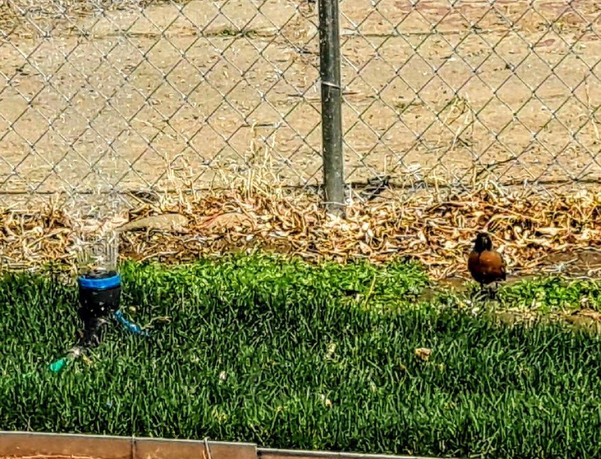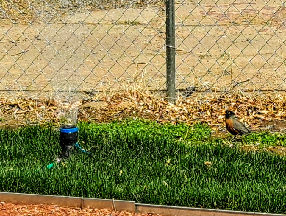 At one time, I’d considered setting up a birdbath because in a dry climate (and today was especially arid), birds appreciate any water they can find. Unfortunately, standing water is too risky in a place where mosquitoes are so much of a problem.