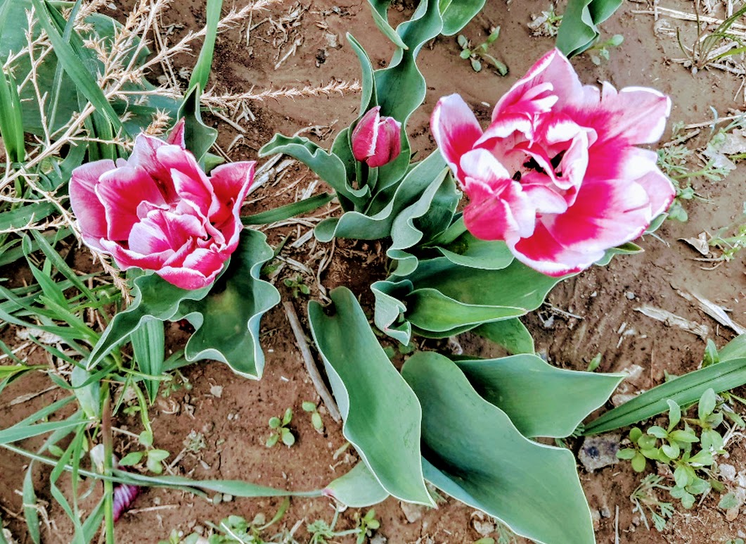 Interestingly, an acquaintance stopped by to drop something off, and he was so taken by these jewels in the grass, that he, too, called them “treasures.” But those aren’t the only treasures of the day. There are a couple of double tulips that are still blooming.