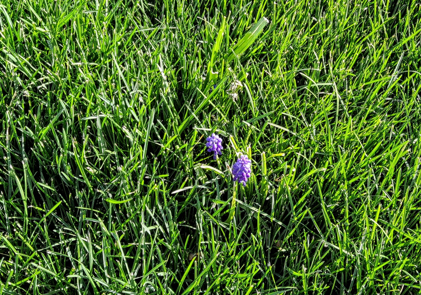 This was one of the many tulips I planted my first autumn in this house. None of those tulips had come up making me wonder about my ever becoming a gardener. And yet now, almost three years later, this particular beauty decided to make itself known. As did this grape hyacinth.
