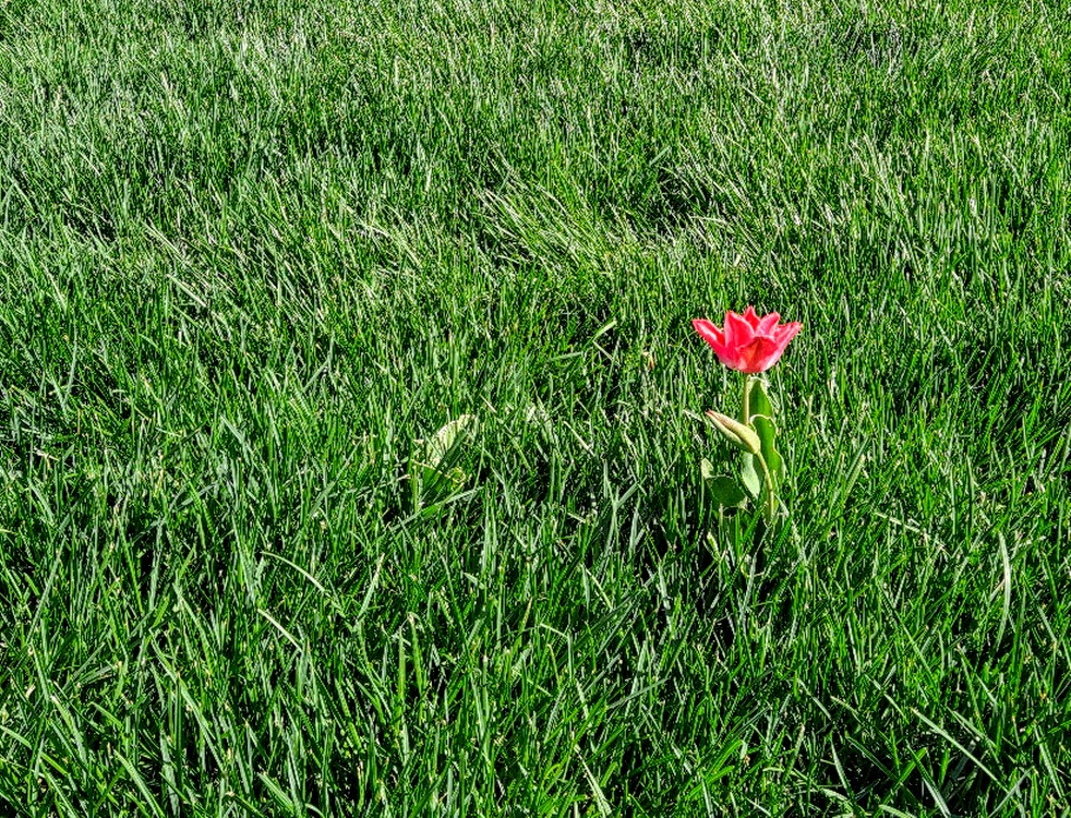 This morning, before the wind got too strong to be comfortable, I wandered around my property looking for treasures. The first treasure didn’t take much looking — the red tulip really popped in the sea of green.