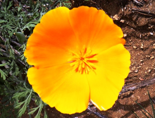 One poppy does not make a poppy field, but it’s a start, right? I never particularly liked these small poppies, having grown up with the large red floppy-petaled poppies, but after my visit several years ago to the Antelope Valley Poppy Preserve, I developed a fondness for the smaller flower. In massive numbers, they look like a sunset fallen to earth, and oh, it sure was something to see.