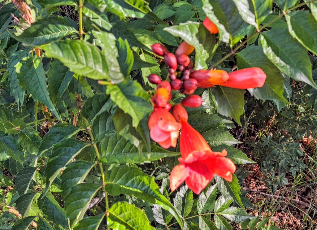 I guess your trumpet vines are heralding the approach of summer. It feels like it is already here with the heat and humidity reaching a heat index of 107/ Yuck. Stay cool!! I’m sure you will have plenty more of the lovely, colorful flowers to grace your yard.