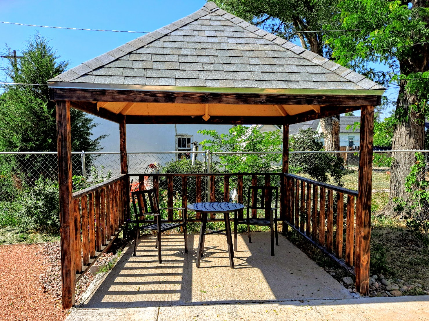 I spent a few pleasant minutes sitting in my gazebo, gazing out at my gazanias (and the rest of my backyard, of course) until the insanely hot and heavy winds blew me back inside the house.