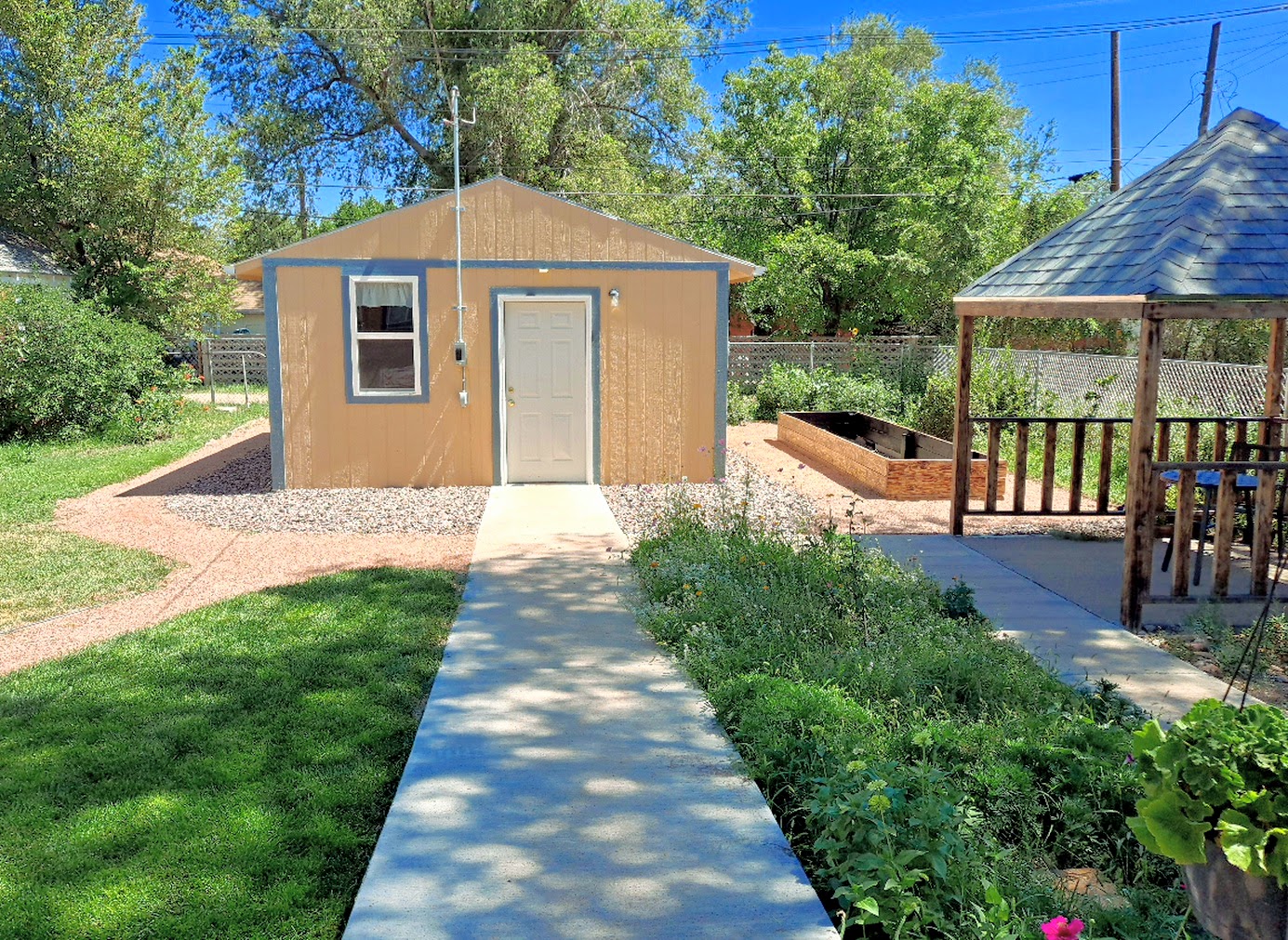 I spend so much time focused on the individual aspects of my garden, both the delightful things like the flowers that bloom, the butterfly that flitted through the yard one day, the hummingbird that sipped nectar from my hanging plant, then stared at me through the window as if to thank me, as well as the undelightful things like stinkhorn mushrooms, encroaching weed grasses, and swaths of brown lawn, that sometimes I forget to look at the big picture. Well, today, I was skirting the house after my morning stint of watering, and the “big picture” suddenly took my breath away. I went inside for my camera, stood at the back door and shot this photo. Wow! This is my back yard? Really?
