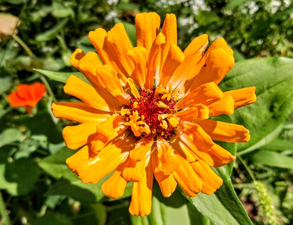 Last evening, when I got home from work, I noticed this bright orange zinnia, and wanted a photo.