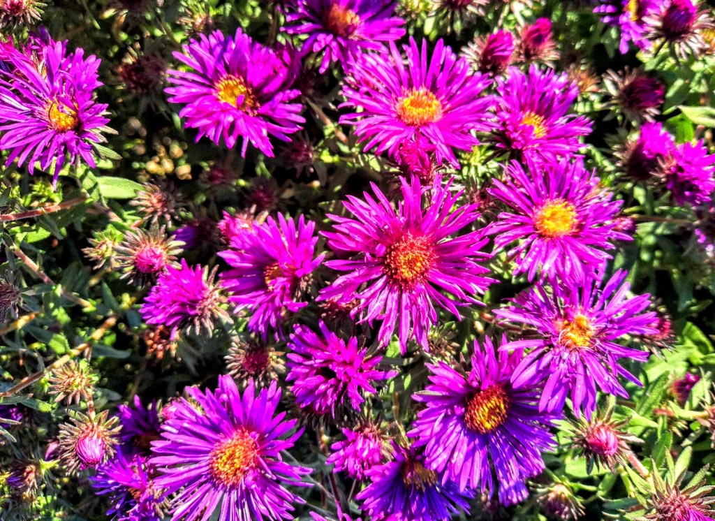 It seems as if summer was never-ending, but then, in just a snap of the fingers, it was over. I know it was a long, hot four months, but in retrospect, the whole summer was truncated. Except for the work I did, though, there wasn’t much to distinguish the days from one another. There seemed to be few summer flowers, and those that did come up, like the lilies and day lilies were swamped in wildflowers or weeds. Now, though, there is plenty of color! Zinnias. Amaranth. Chrysanthemums. New England Asters. Marigolds.