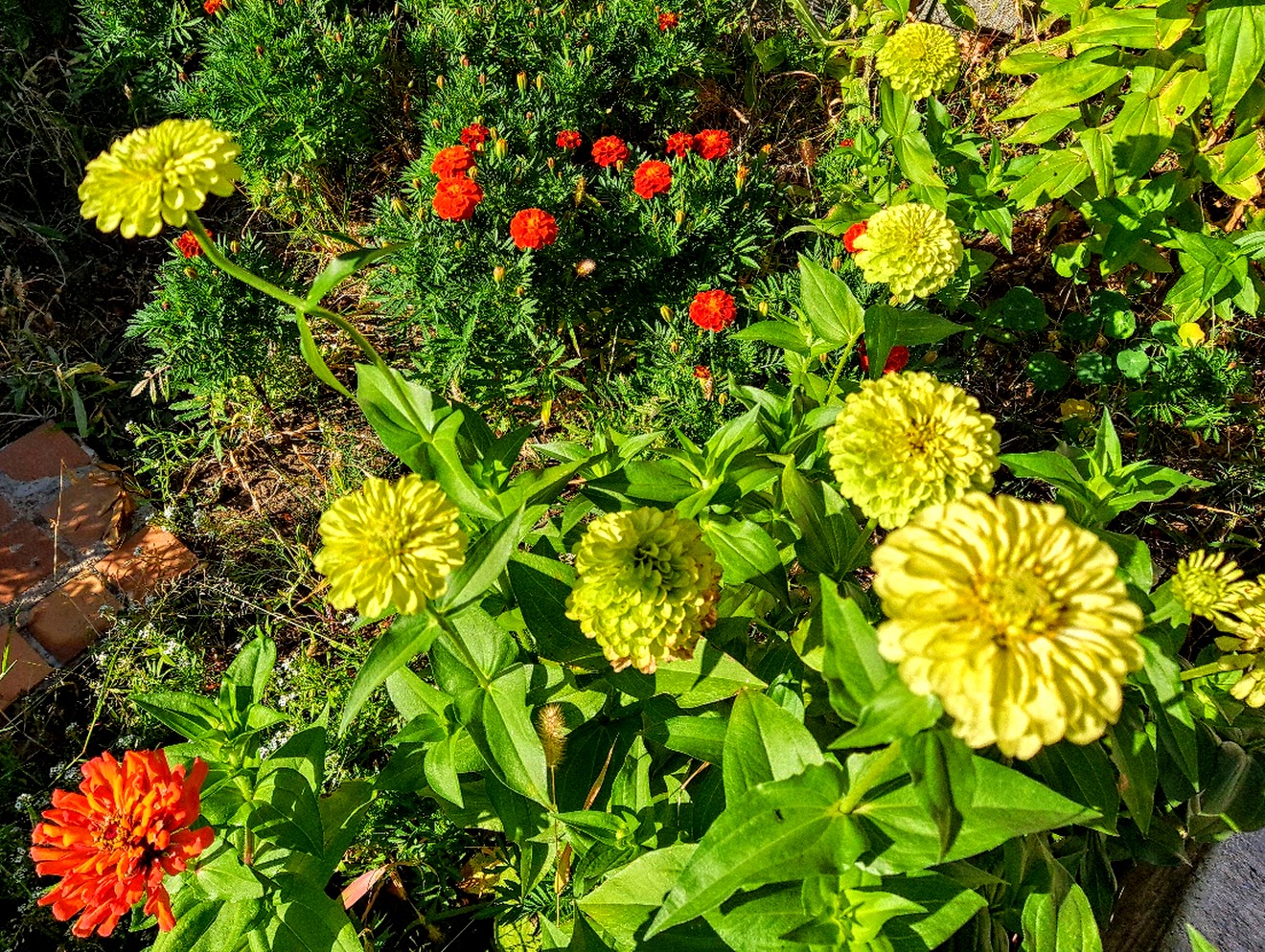 It seems as if summer was never-ending, but then, in just a snap of the fingers, it was over. I know it was a long, hot four months, but in retrospect, the whole summer was truncated. Except for the work I did, though, there wasn’t much to distinguish the days from one another. There seemed to be few summer flowers, and those that did come up, like the lilies and day lilies were swamped in wildflowers or weeds. Now, though, there is plenty of color! Zinnias. Amaranth. Chrysanthemums. New England Asters. Marigolds.