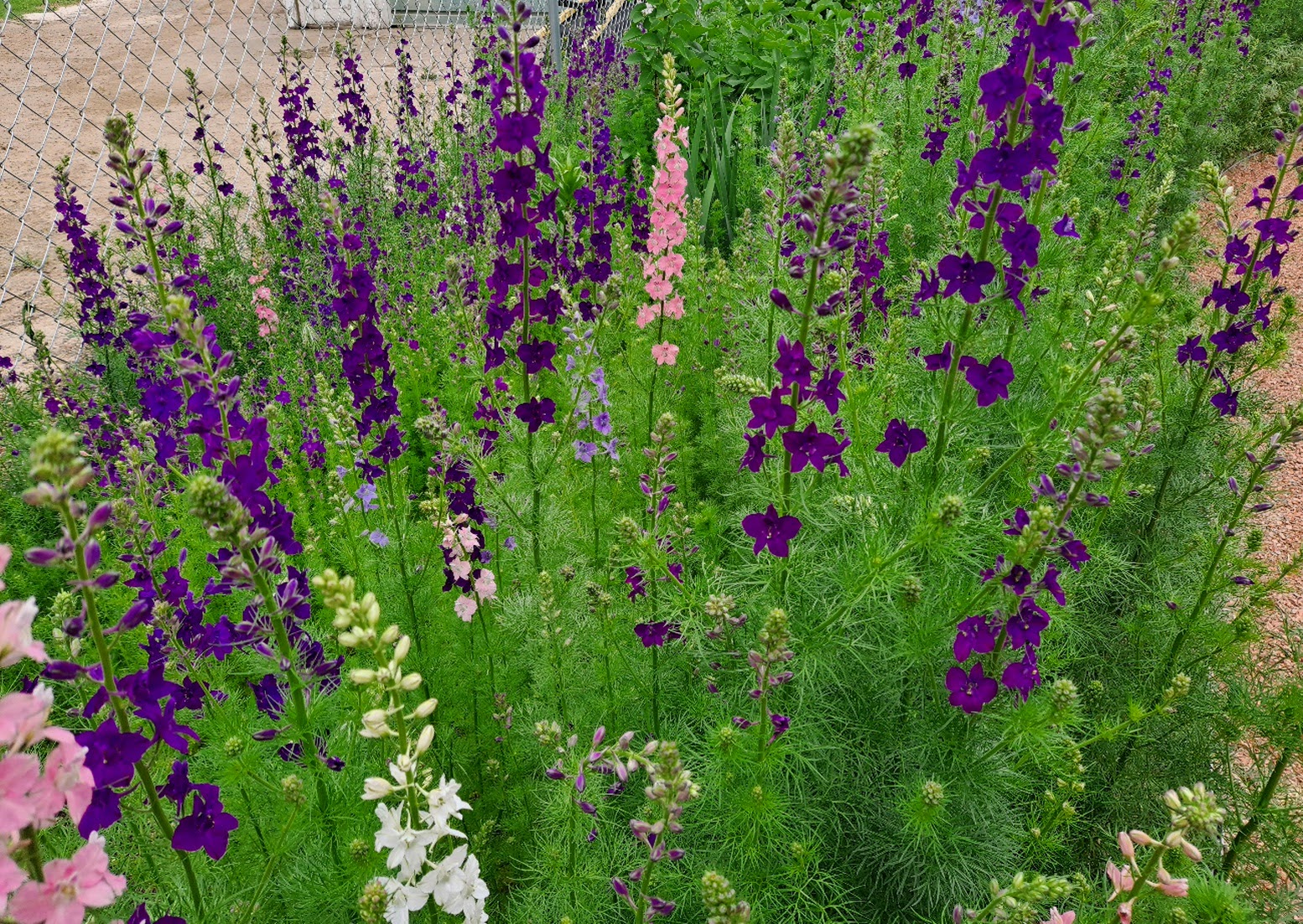 This is a sideview of the garden. Look at all those larkspur! To think that all that came from the half dozen or so plants I transplanted from my neighbor’s yard (with his permission, of course). I thought they were a low-growing flower, because that’s how they grew in his unkempt yard, but apparently, when given a bit of care, larkspur grow to monstrous heights. Some of these stalks are shoulder height. And such a lovely sight.