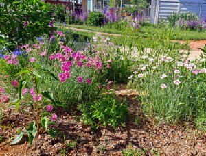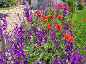 Plenty of flowers planted themselves, such as the red poppies, and the larkspur. Other plants spread nicely. And some not so nicely. (I try to stay away from flowers that take over, but that’s not always easy to control since what should grow here doesn’t always and what shouldn’t sometimes does.)